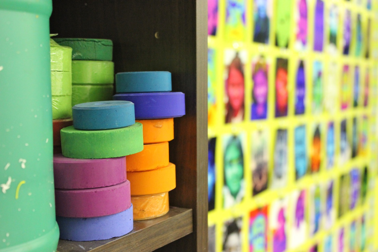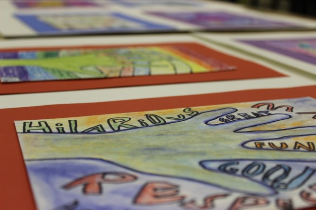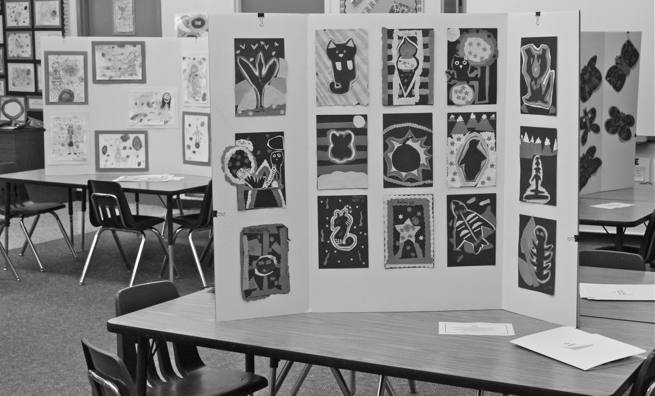 The morning after the big show. Part-time elementary art teacher: handy with construction paper, masking tape and tacks.