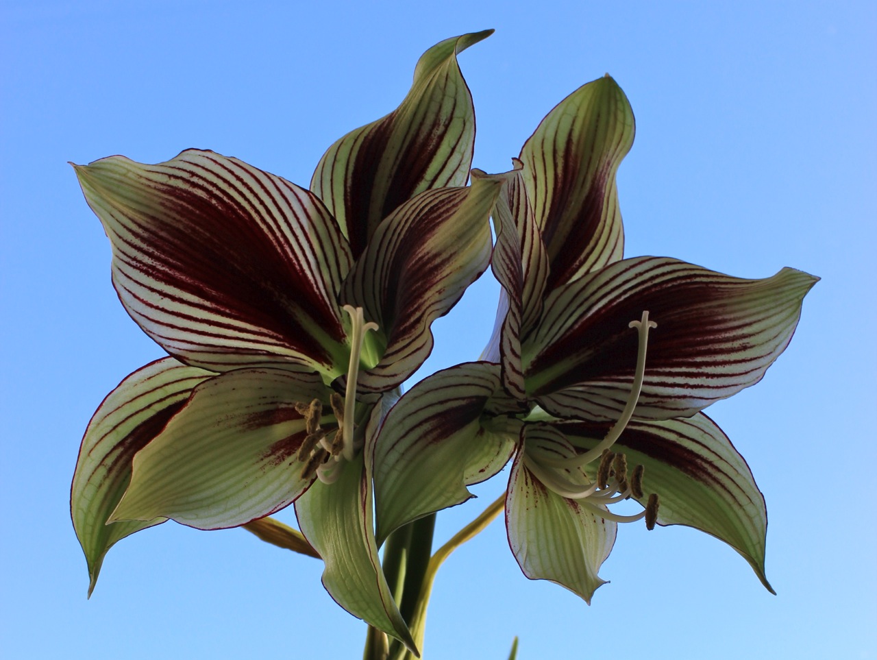 Something’s going on with my breathing. Too long to be a cold, two doctors say I’m not contagious. Two more weeks until a breathing test. Trying to relax. Took a photo of a gifted amaryllis instead. Amaryllis ‘Papillio.’