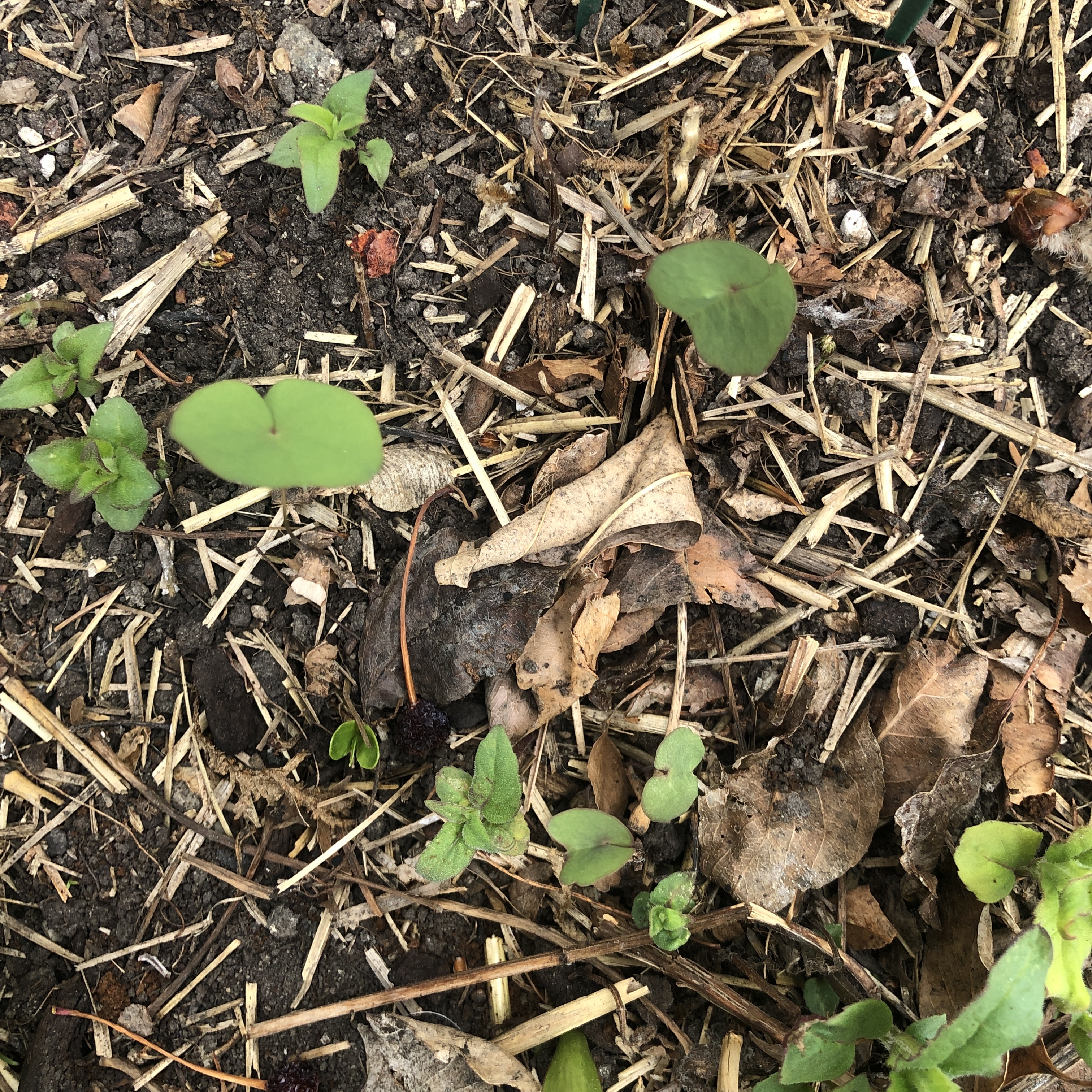 One spring I was surprised to see those unmistakable leaf forms showing up in miniature around other parts of the garden. When I told Rodney about it, he mentioned that this was the work of ants.