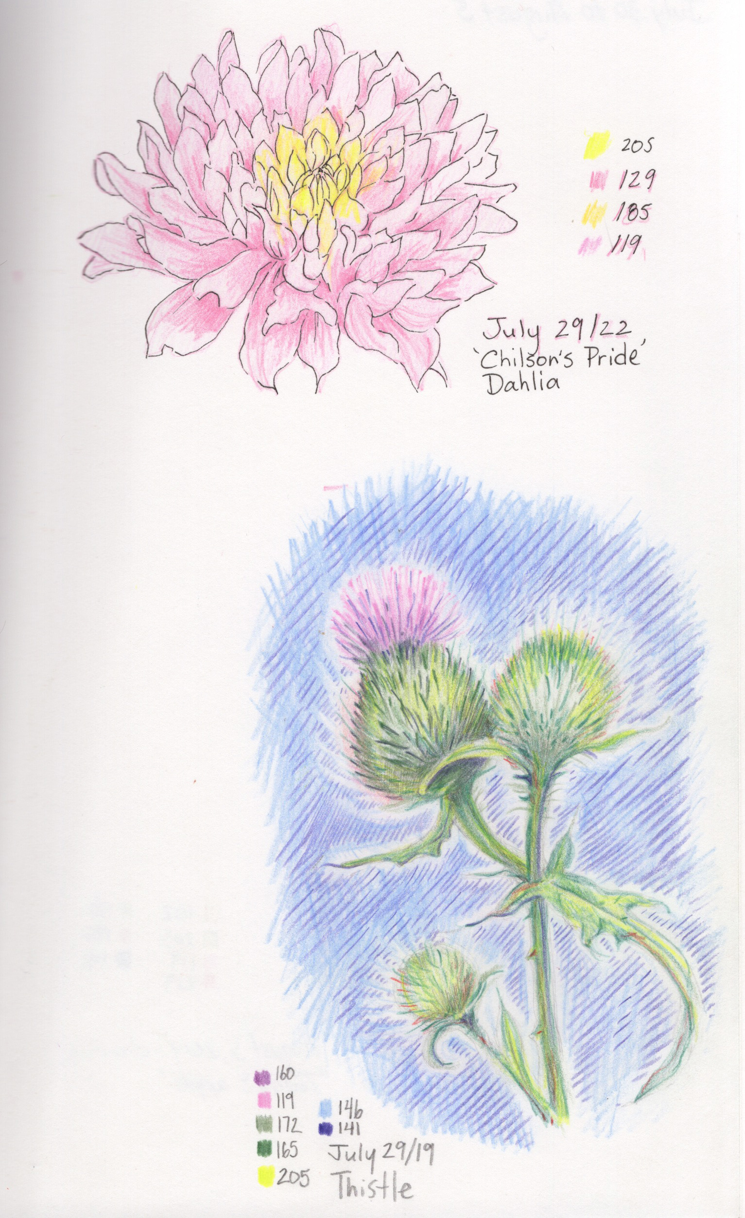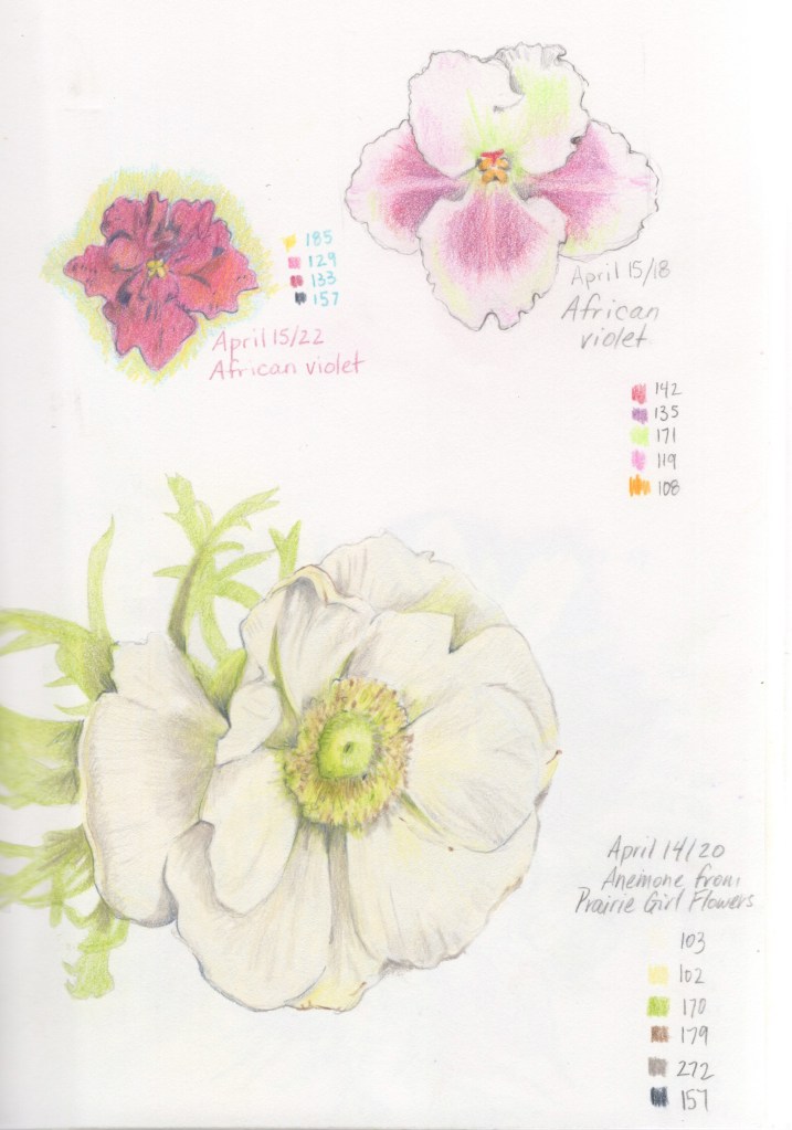 Included, a few pages illustrating drawings I’ve done over the years. This idea for a perpetual journal came from the phenomenal botanical artist, Lara Gastinger. I am grateful for her sharing and have made peace with the fact I will never have the patience (or eye sight!) to draw the way she does.