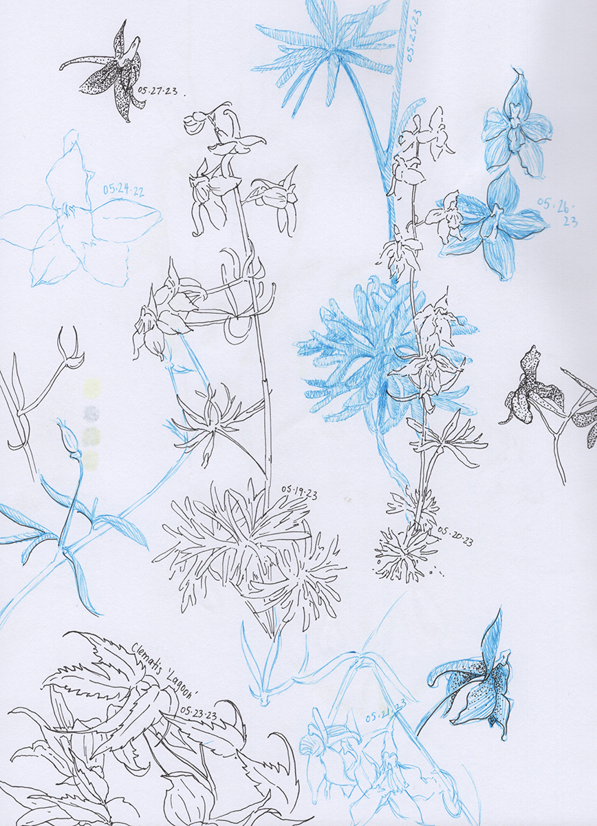 My most favourite non-art activity is contour drawing from observation. I used to be able to reach a flow and connection trying to assess the tension between where the object edge ended and the space around it (negative space) began. Eventually, I realized this exercise was going nowhere except towards pure frustration (comparing my sketchbook entries to real art – framed and ready for a show or such) and I stopped. There are all sorts of reasons to judge it as non-art, but recently, I am learning to care less what I call it and enjoy the process when I can. May was full of daily contour observations. June not so much.