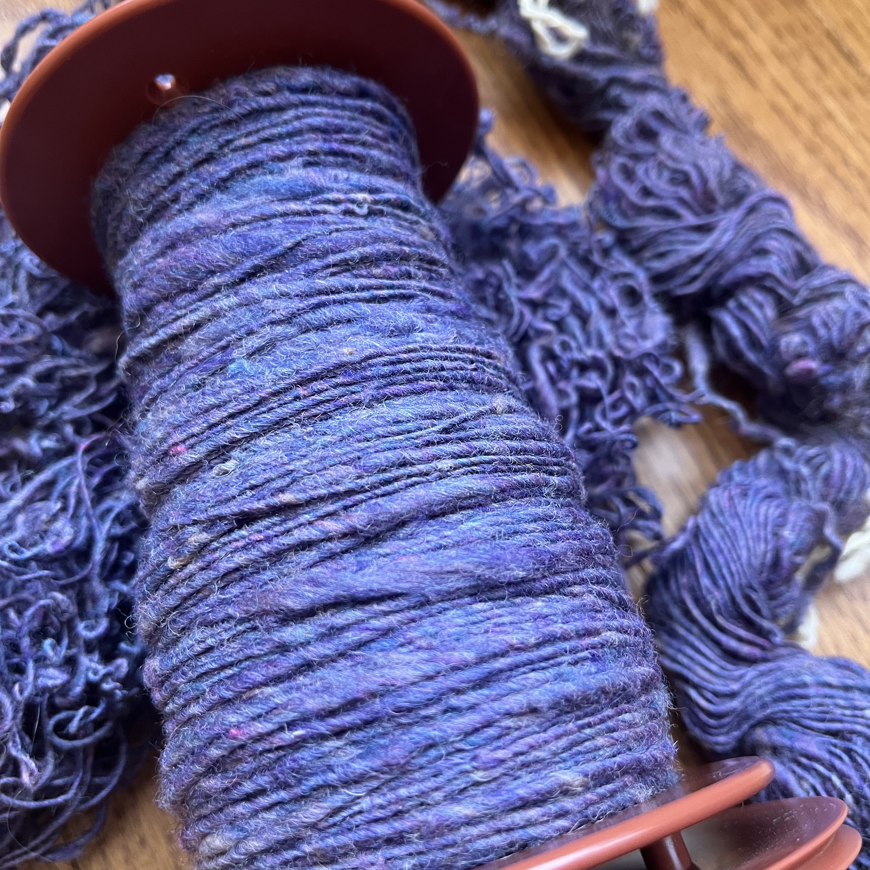 I took one skein and spun it again counter-clockwise – releasing a lot of the twist and the touch on the bobbin feels softer. My plan is to spin the single one more time and see if I can even out some of the inconsistencies, then chain ply.