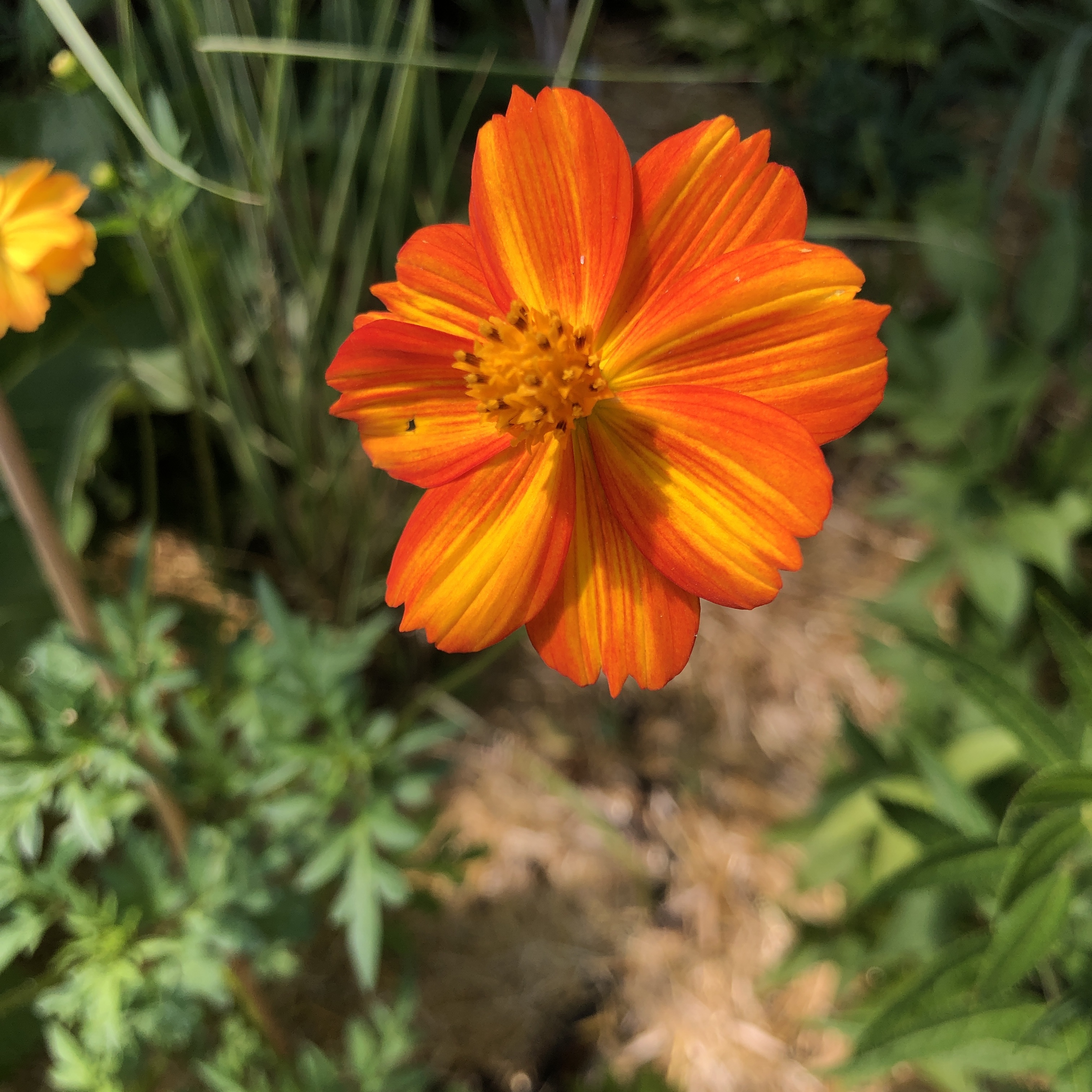 This was my first year growing cosmos, the plant. A gift of mixed seeds from my mom. Out of the mix, and out of power of deduction, I believe the one that produced for me is called Bright Lights.