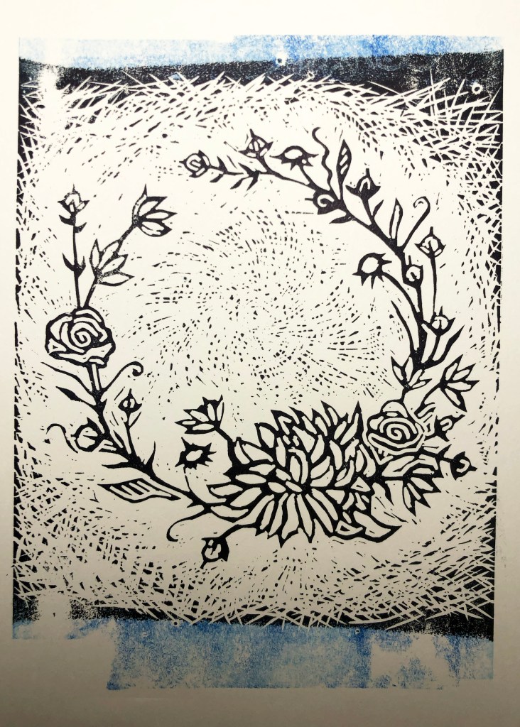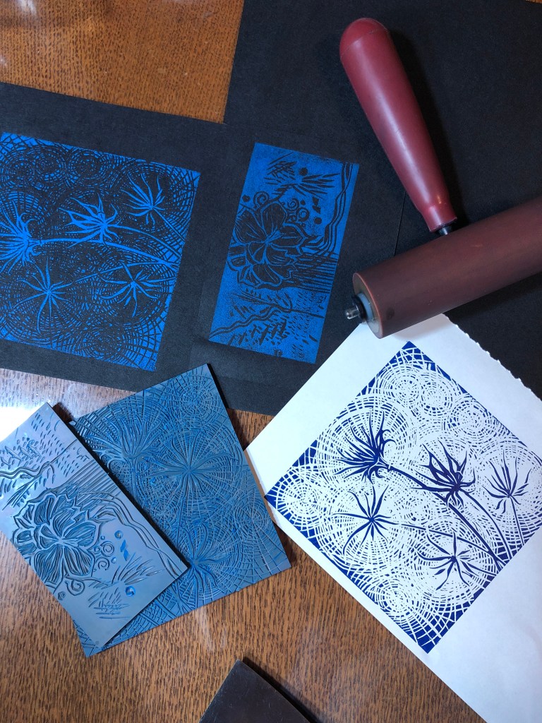 These unique and lovely seed pods are what inspired the linocut study below: