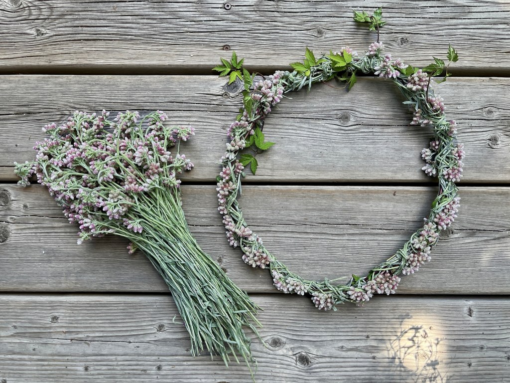 In my mind, I had romantic visual plans for today. I would walk to the park as the first light of Winter Solstice filtered through the trees. The wreath of pussytoes I had created this spring summer would be displayed on the sparse covering of sparkling snow. From there, an airy breeze would lift the seed puffs and disperse them to become future native seedlings living again within their natural habitat. And I would photograph the experience artfully.